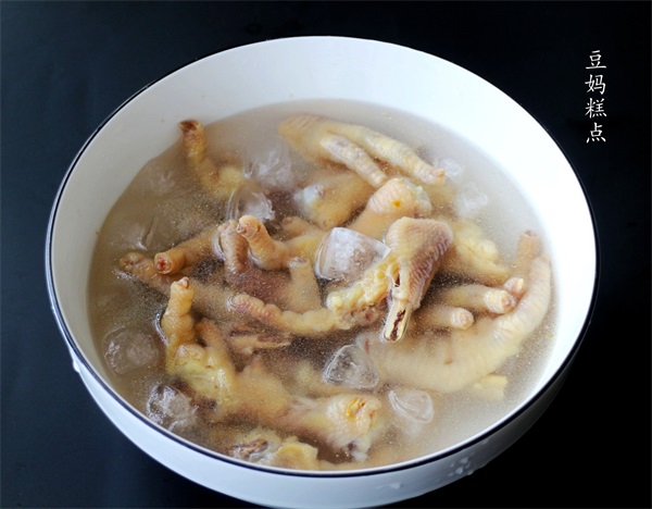 2、鸡爪煮好后一定要过冰水或者凉水,以泡除胶质;