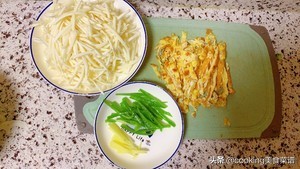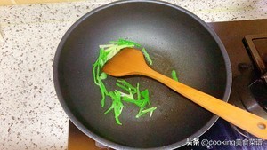 青椒一半,破开剃掉里面的筋然后切丝,姜丝也切好备用