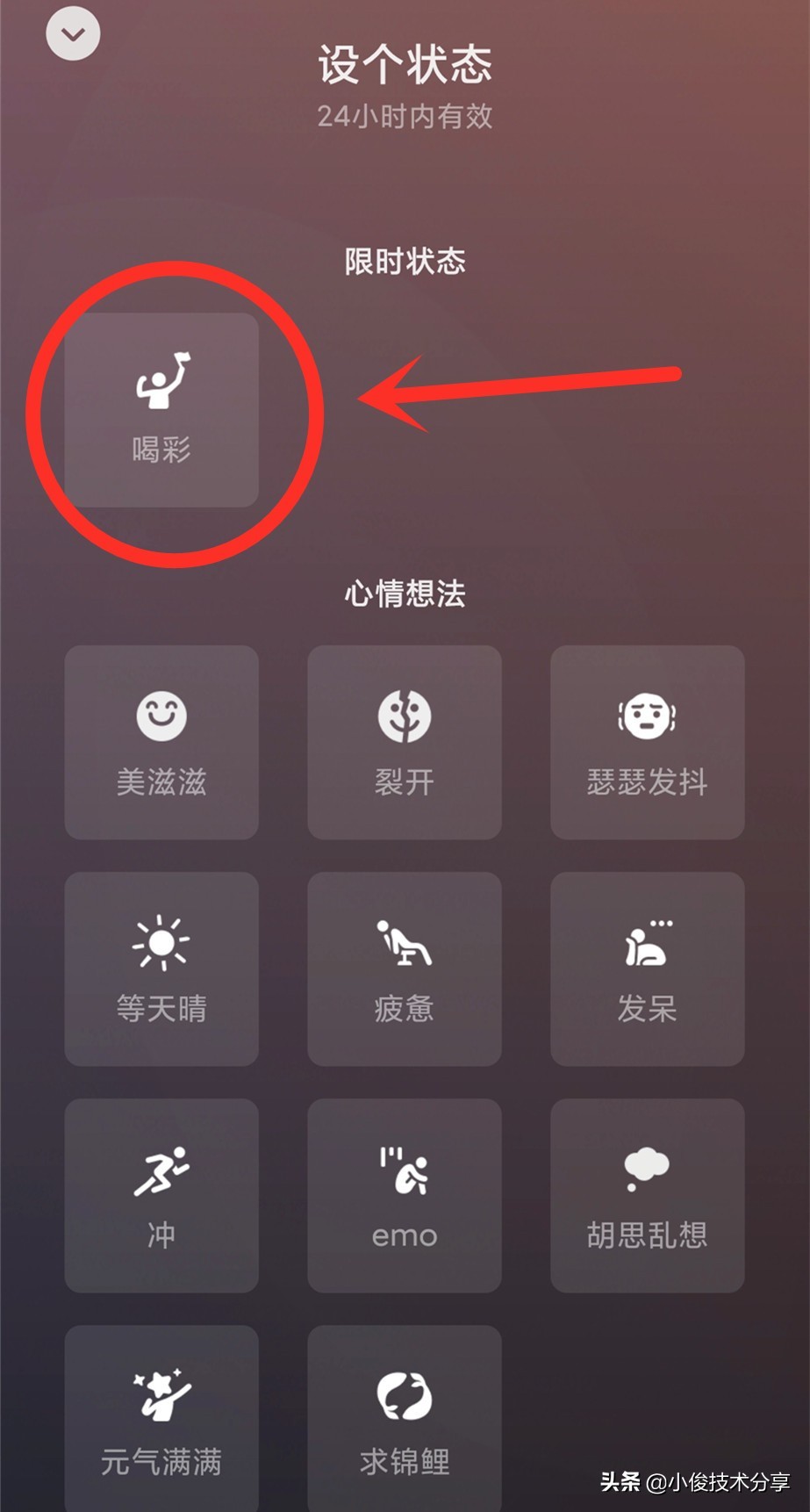 打开【状态】之后随便添加一个自己喜欢的【状态】