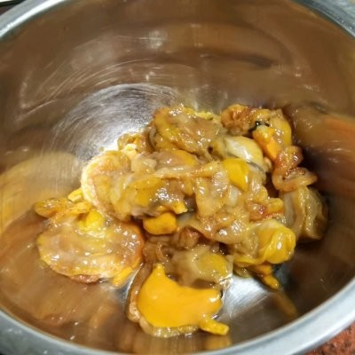 5、扇贝肉中加入适量姜丝料酒和生抽搅拌均匀
