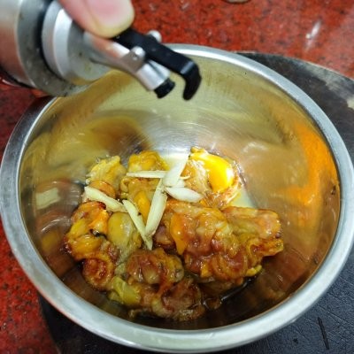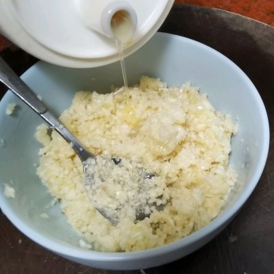 6、大蒜打成蒜米后,加入适量油和生抽搅拌均匀