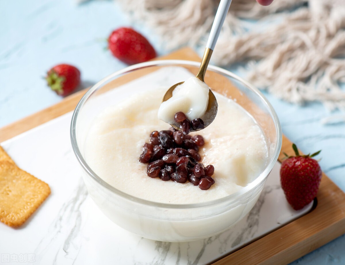 做法:牛奶注入养生壶煮温热,倒碗里凝结奶皮后取奶皮备用,另取碗打蛋清,倒白砂糖和过筛后的热牛奶拌匀,再过筛两次,倒入奶皮碗用扎好小孔的保鲜膜密封,蒸15分钟取出,放上蜜豆即可。