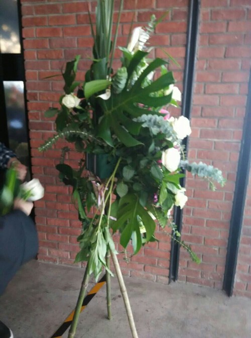花篮运送过来有点颠簸,这造型也让粉丝吐槽“爸爸你扎花篮辛苦了”