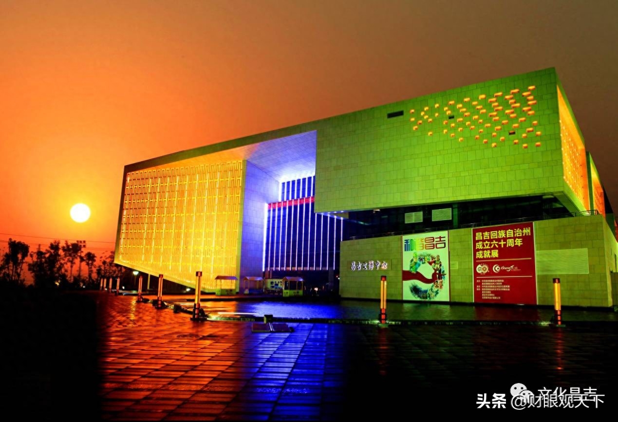昌吉市文博中心:昌吉文博中心是新疆维吾尔自治区昌吉市的一个综合性博物馆。2013年3月开工建设,2016年6月开馆。内部陈列布展分为历史厅、民俗厅、成就厅、儿童厅、昌吉名人馆和临时展厅等。通过微缩的历史场景,集中展现了昌吉漫长的文化历史和改革开放发展成就,具有社会教育、文化交流、文物保护等功能。据2020年9月国家文物局信息显示,现有藏品1500件/套、珍贵文物3件/套,举办展览6个,开展教育活动3次,参观人数5.1万人次。