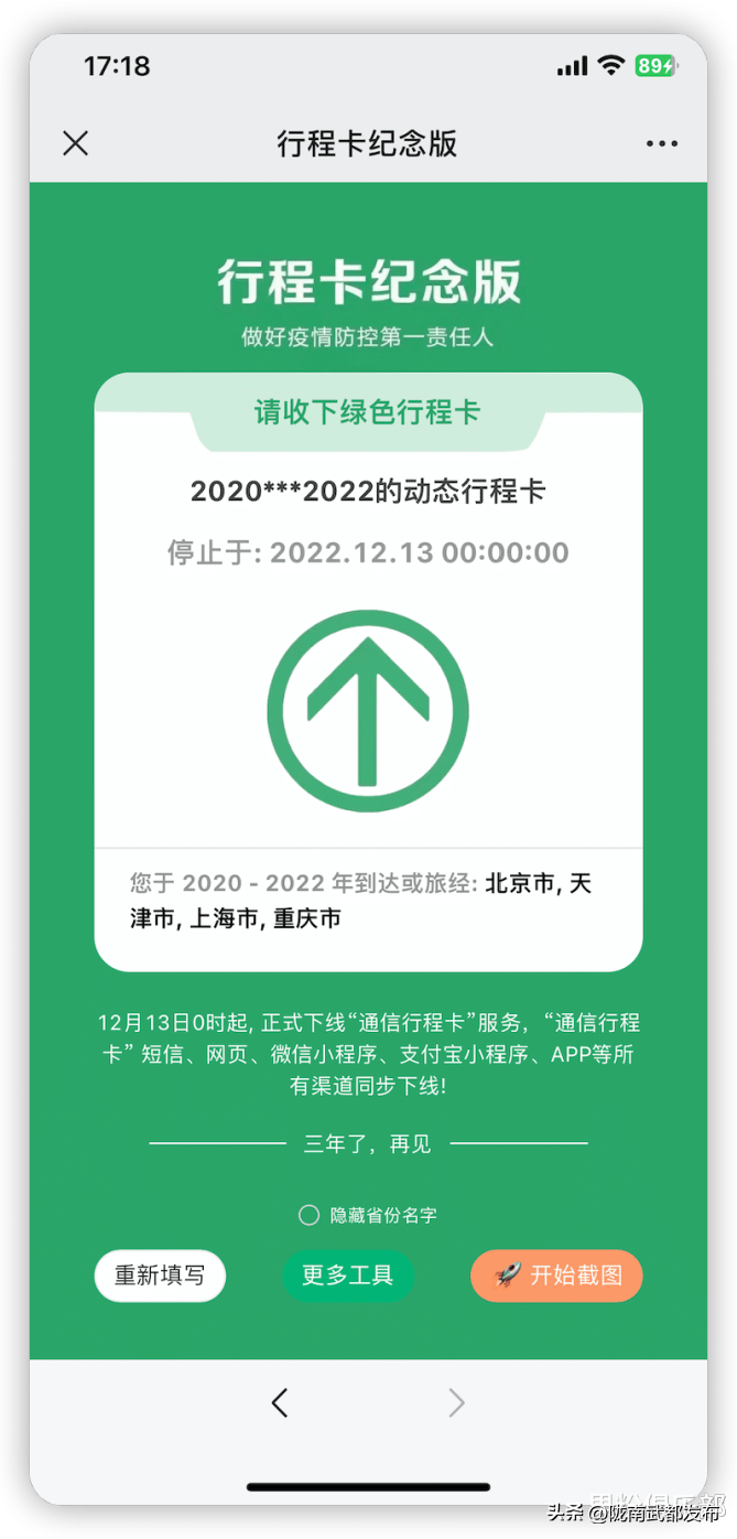 很多网友赶在行程码下线前,纷纷晒出自己的截图,和过去的三年挥手告别。