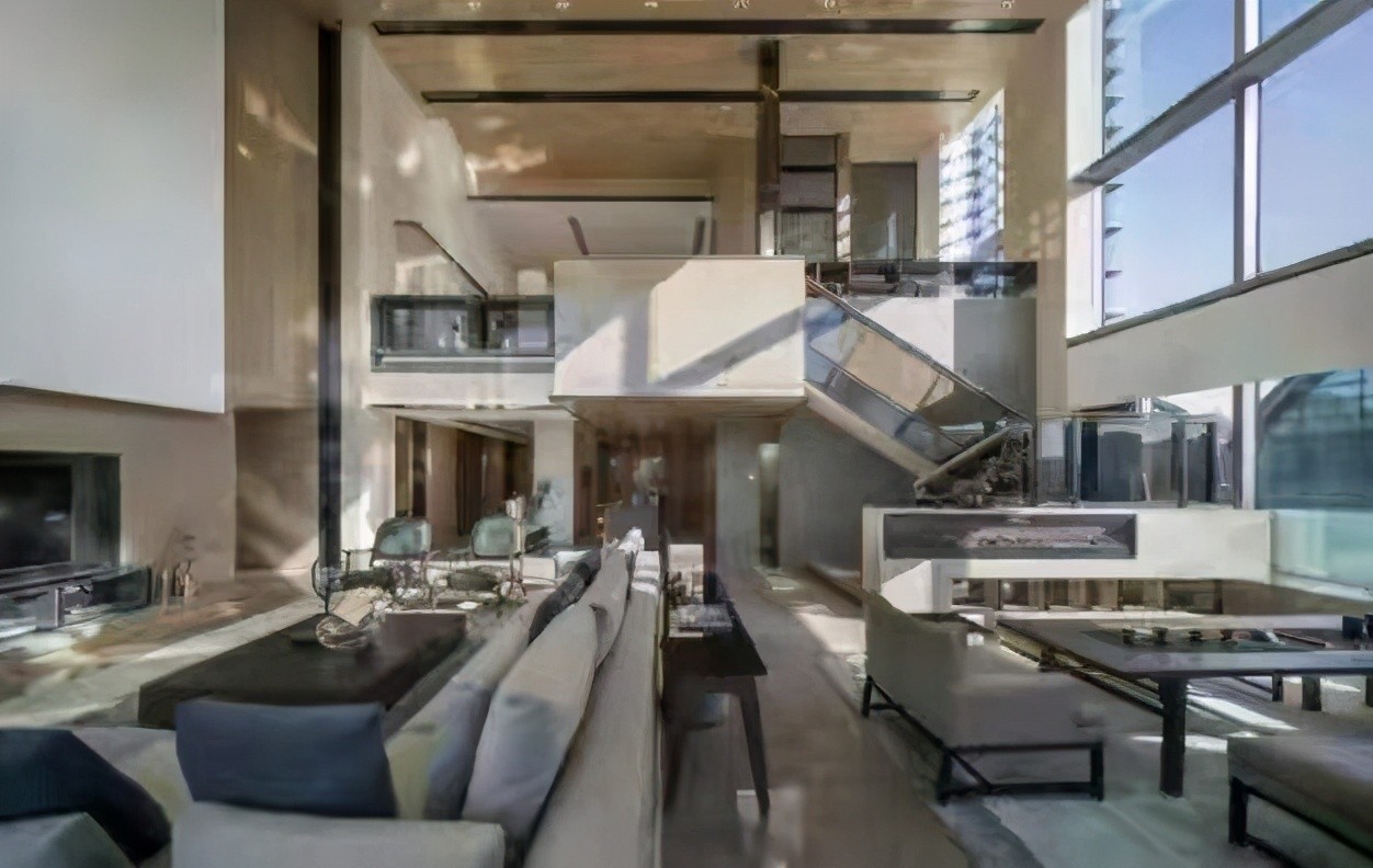 下面就带着这份好奇心一起来看看于晓光的豪宅是什么样的吧,首先我们看到的是家中客厅整体空间,选用了非常精致的现代风格进行设计,空间面积很大而且家中的采光与光照非常通透明亮一看就是精心布置过的 ,豪华程度一点都不亚于五星级酒店,家中因为举架恒安所以选用了复式楼变得设计,二楼看上去应该是客厅空间。