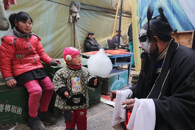 枣梆戏发源于梁山县拳铺镇方庙村,是市级非物质文化遗产,属于古运河文化的产物。绪初年,山西有个上党梆子“十万班”来鲁西南地区演出,历时一年之久,鲁西南地区会喜欢唱戏的人纷纷到“十万班”,拜师学艺深造。接着,从河北临铭关来唱“泽州调”的演员与鲁西南老艺人们又经过多年的探讨、研究,发掘了流传在皇宫的曲子和民间小调融合在唱腔里面,形成了一个比较完美的、别具一格的剧种。到了清朝末年,枣梆戏已发展到了河南的濮阳、河北的邯郸、山东鲁西南地区。枣梆戏,具有浓郁的乡土色彩和地方风格,她既有上党梆子的特色,又有皇宫的曲调,所上演的剧目由老艺人口传下来的有100多回,大多取材于民间演义小说,如歌颂忠臣的《天波楼》,也有行侠仗义的《水浒》戏,如《李逵坐县衙》、《时迁打铁》、《宋江杀惜》、《潘金莲坐楼》等。在艺术方面,枣梆戏家底雄厚,角色行当齐全,分工严格,表演程式完整,具有独特风格。该组图片拍摄于2014年,每年进入冬季梁山枣梆剧团就开始辗转各地演出。(李继保 摄)