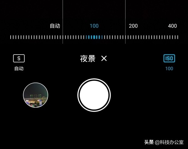 在相机底部我们开启夜景模式后,底部有两个图标,其中左侧“s”代表的是快门,而右侧ISO代表的是感光度。一般来说的话快门是不用调整的,ISO可以调整到100左右,效果还是非常不错的。