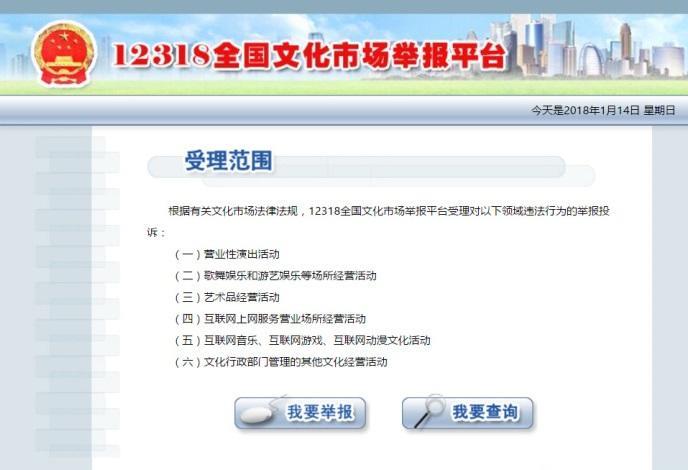 4、12318全国文化市场举报平台(图7):具体受理范围见图7