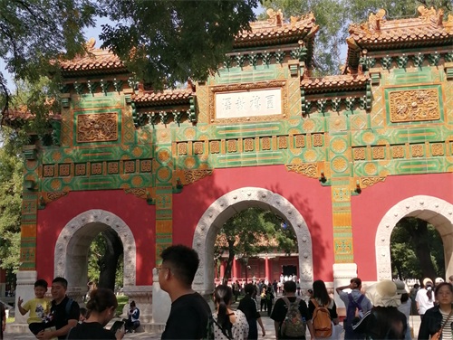 国子监 建于(1308年),是元、明、清三代国家最高学府和教育行政管理机构,是中国唯一保存完整的古代最高学府校址。国子监建筑面积1100余平方米,也是三进院落。中轴线上的建筑由南至北依次为集贤门、太学门、琉璃牌坊、辟雍大殿、彝伦堂、敬一亭。