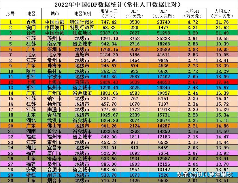 表上看上海人口数量是中国最多的,实际上最多的是重庆达到了3213.3万人,但是人均只有1.64万美金,