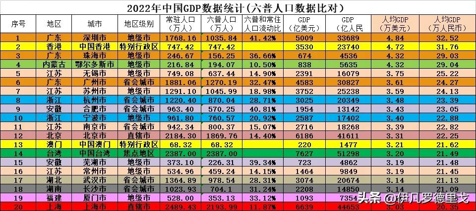 上海市是中国最发达的城市,真的不是喊口号的,2022年上海停滞了6~8个多月的发展,只发挥了50%不到的功力,大家都在家里没有上班,但是依旧贡献了中国大陆第一的GDP,达到了44653亿,但是在中国前20强人均GDP上排名最后一名,只有人均20.35万人民币(3.03万美金),GDP总量的第一名是中国台湾,人均21.49万人民币(3.2万美金),GDP总量达到了51298亿,第三名是中国北京GDP达到了41611亿,人均22.25万人民币(3.31万美金)。发达国家门槛,这个一般是以人均GDP超过二万美元为标准,才能够算作是为发达国家的硬性条件,表上看中国发达城市均达到了发达国家标准,但是中国2022年全国GDP是120万亿人民币,达到17.84万亿美金,按中国14.24亿人口,平摊下来人均GDP就是1.25万美金左右,还达不到世界发达国家门槛。
