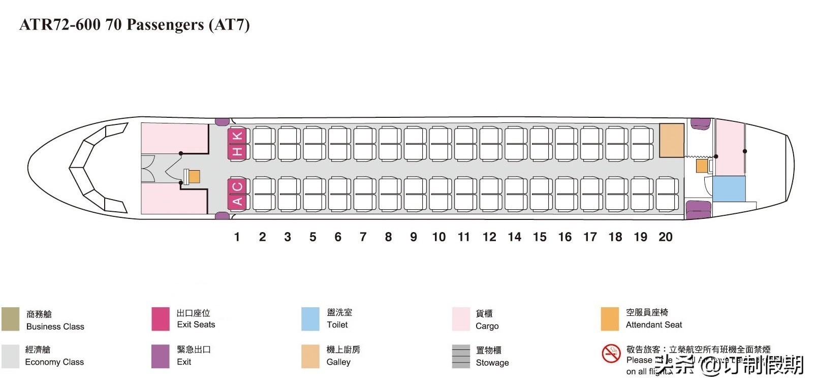 经济舱单一布局70座 ATR72彩绘机的座舱