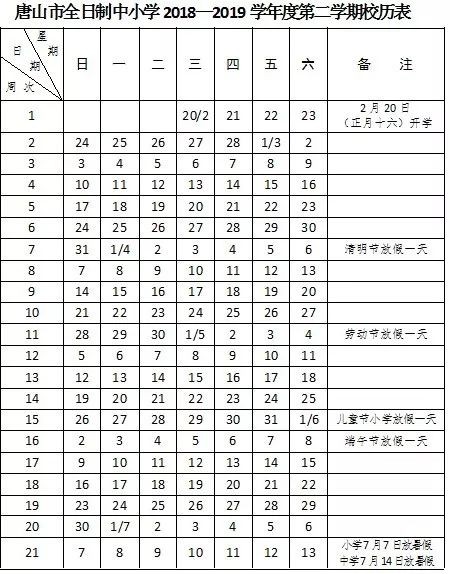 了解了放假、开学的消息,小编同时还为您附上唐山市全日制中小学2018—2019学年度第二学期的校历,快看看吧!