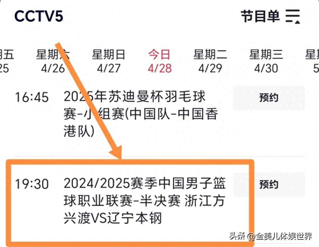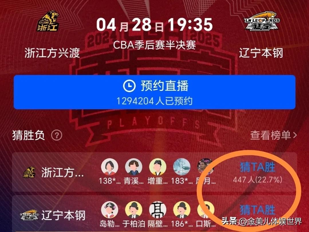 CBA半决赛G2直播安排:浙江v辽宁!CCTV5直播,线上超百万人预约