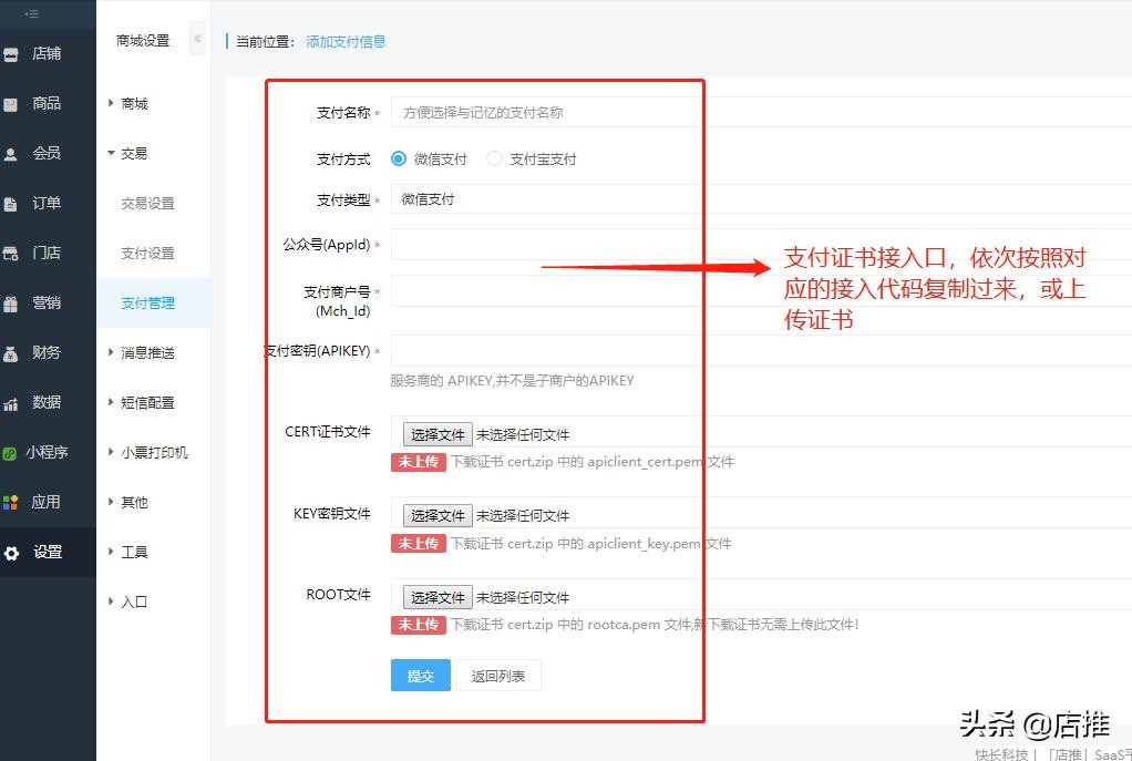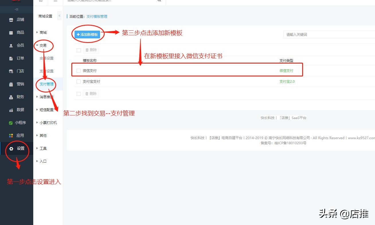 第五步 登录店推SaaS平台,商城后台管理系统,按以下步骤进行操作。