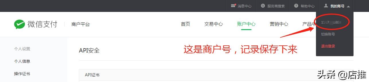 第四步、记录保存好:商户号、API秘钥,申请并下载API证书。