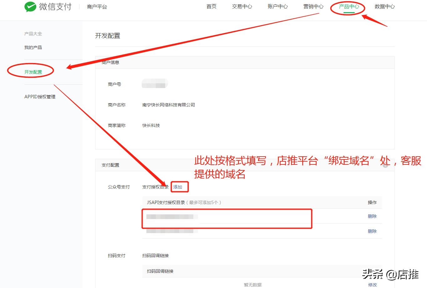 第二步、产品中心-开发配置-支付配置,按要求填写绑定域名。