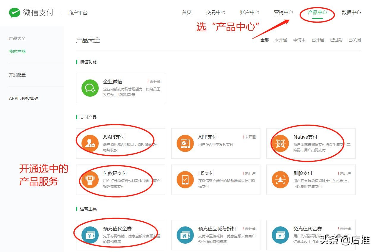第一步、登陆微信支付官网://pay.weixin.qq.com/,管理员扫码登录,找到“产品中心”。(注意:这个微信支付一定要与服务号同一主体)