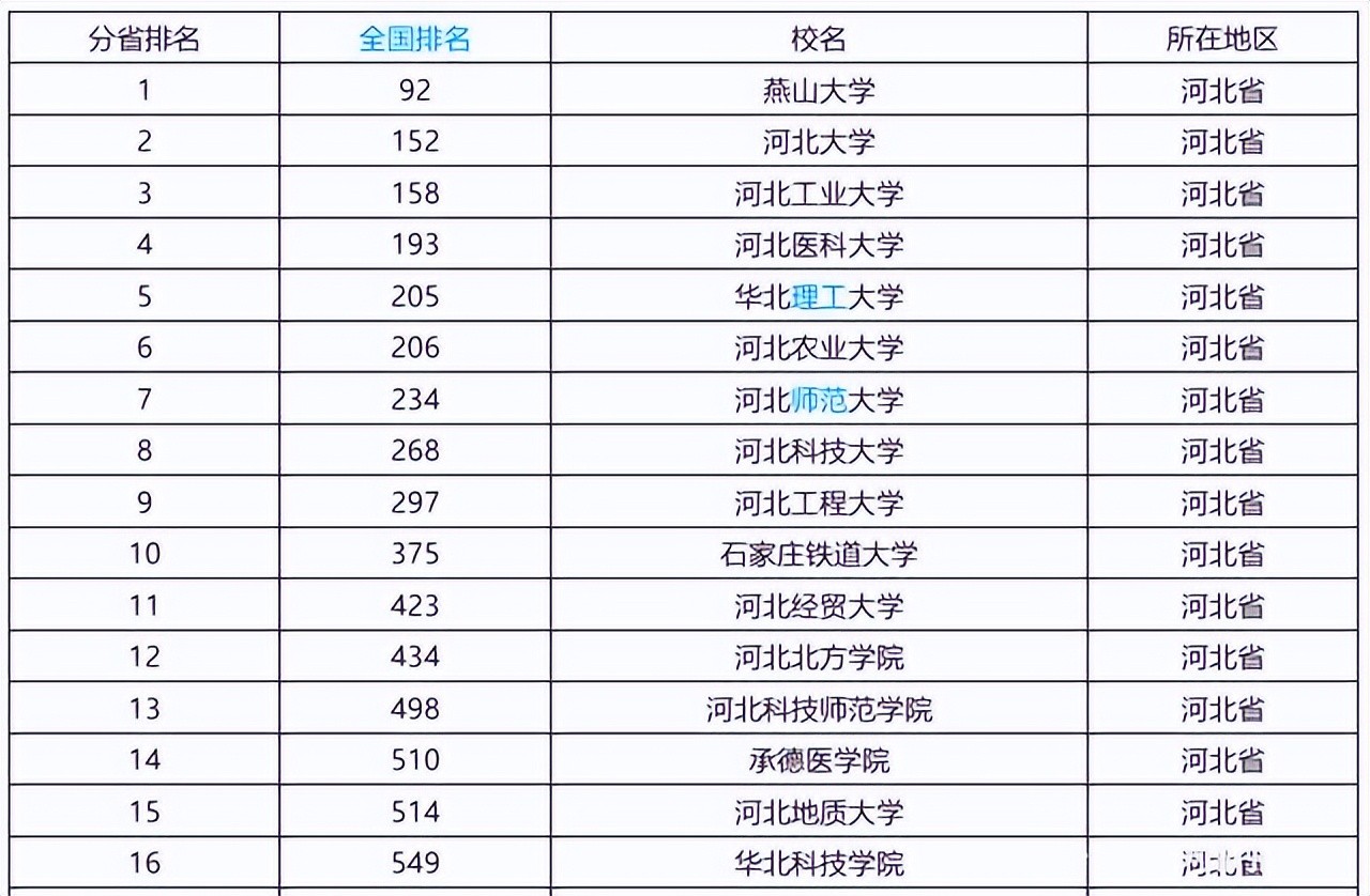河北省内大学排名情况