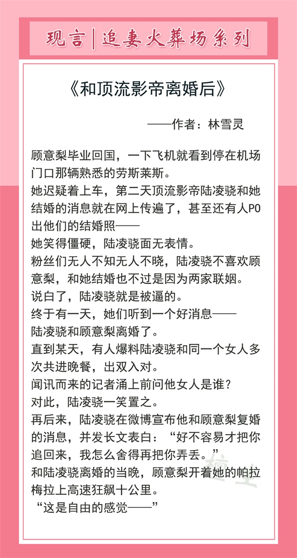 第三本:《和顶流影帝离婚后》作者:林雪灵