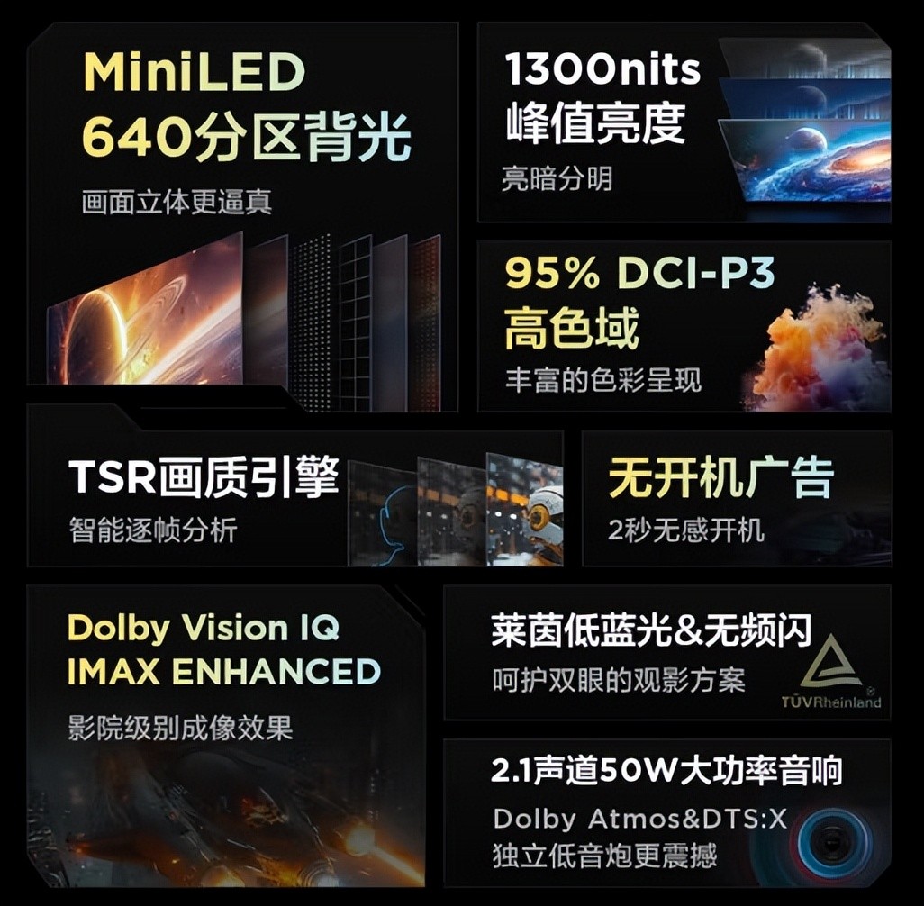 众所周知,在当下的电视品类中,miniLED热度是非常高的,它也是高端液晶电视的代表之一,它的画质虽然没有OLED电视通透,但是它具有OLED电视没有的亮度、S使用寿命和价格等优势,特别是价格,是劝退大多数人不买OLED电视的原因,同样的75英寸电视,OLED电视的价格要比miniLED高出一倍以上。而伴随着miniLED工艺的成熟,这种价格差距还在进一步拉大。