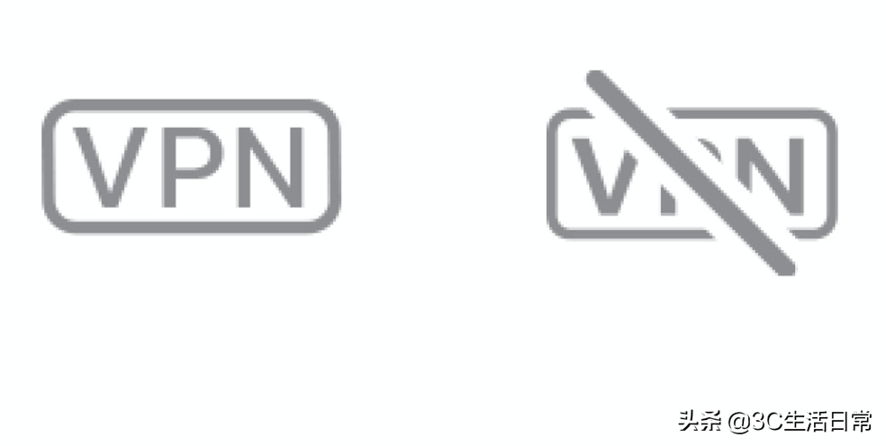 当我们使用VPN科学上网时,手机出现VPN字样,就代表可以进行科学上网了,如果出现右侧所示的符号,则表示没有连接VPN。