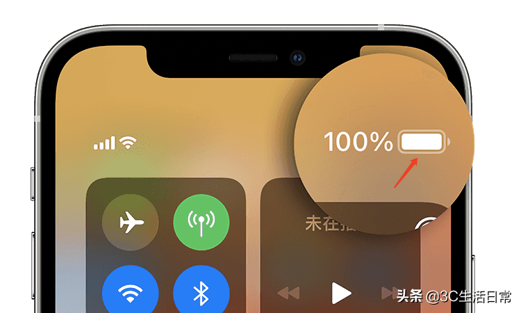 显示黄色表示打开了低电量模式,红色代表电量低于20%,