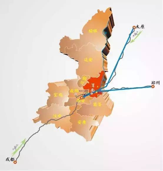 成都,郑州,太原自驾去华山的线路地图