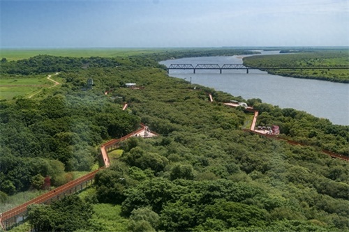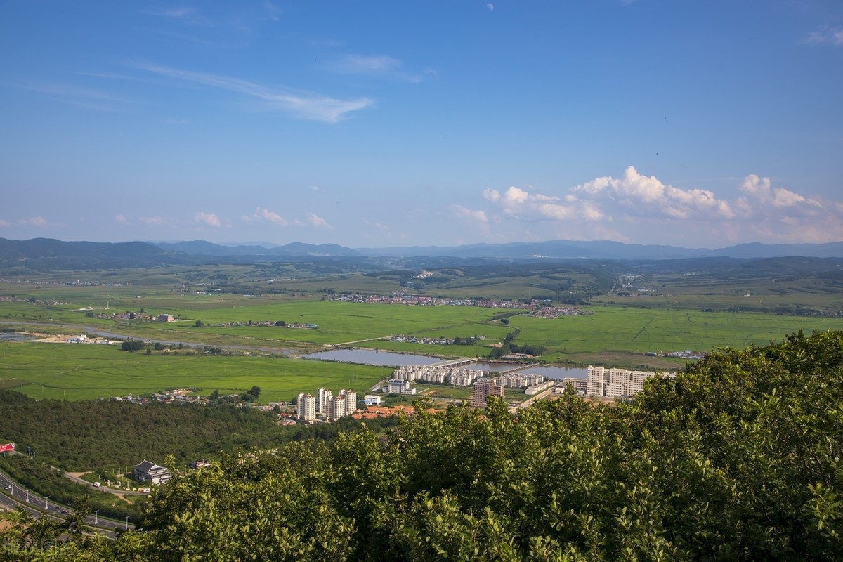 1. 一眼望三国景区:地处吉林省延边市珲春市级县的防川国家级风景名胜区内,它处于中国、俄罗斯、以及朝鲜三国的交界处,南侧紧邻图们江,西南与朝鲜国的豆满江市接壤,东南与俄罗斯共和国的哈桑镇包德哥尔那亚城毗邻。这里是我国唯一一处可以一眼望三国的地方,具有很大的战略意义。珲春市气候属中纬度、近海洋性季风气候区,冬暖夏凉,夏季是该地的旅游高峰期。景点里比较有代表性的建筑就是龙虎阁了,它的主体建筑底部为堡垒式设计,顶部为仿古式建筑,共有12层,总高65米。站在龙虎阁上,一眼可以看到三国的景象尽收眼底。