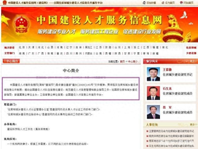 一、中国建设人才服务信息网(建信网)由全国建设人才信息咨询与就业指导中心主办,住房和城乡建设部业务指导,国家唯一建设人才信息公共服务平台,以服务建设专业人才、服务建筑企事业单位、促进建设 行业发展为办网宗旨。合格者颁发:建设部专业人才认证报告、建设人才卡,“建信网”长期查询, 国家建设主管部门认可。