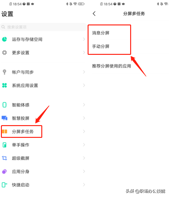 方式:进入【设置】,找到【分屏多任务】,然后把【消息分屏】与【手动分屏】打开就好了。