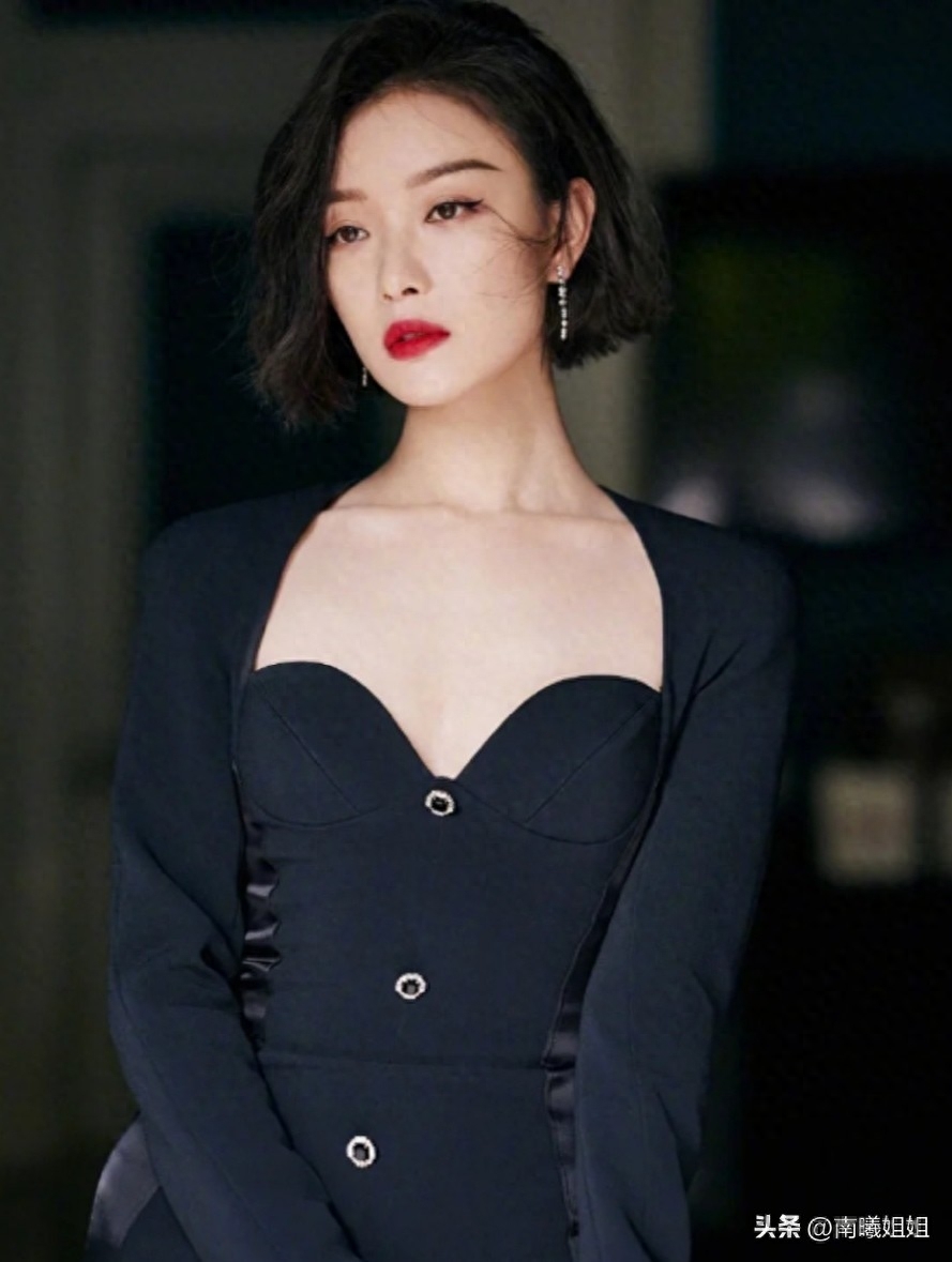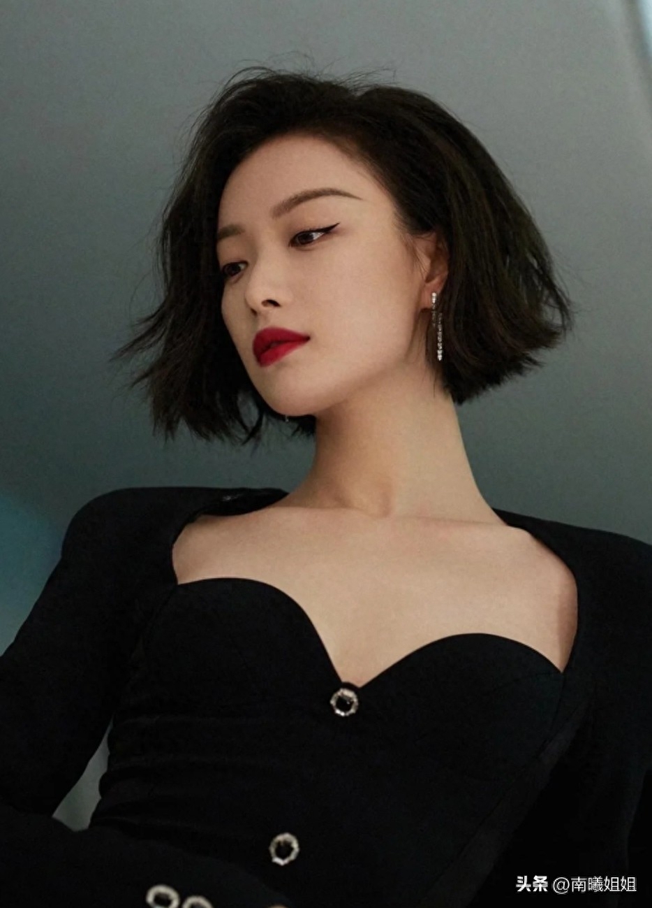 比如倪妮在近两年就很喜欢这款一刀切的短发,不仅将五官和脸型都衬托得更显精致感,以及立体感,不少的女艺人都上头啦!