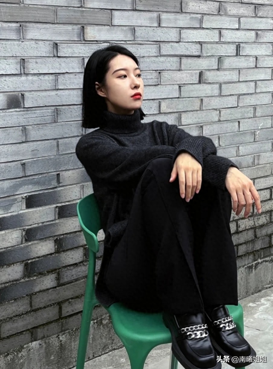 一刀切短发是绝对的甜酷类发型和气质的呈现,所以与之搭配的单品类型也要尽量保证统一的酷感哦,例如暗色调单品、或者西装、大衣、皮衣等这一类的利落简约感的衣服,营造甜酷女孩的效果。