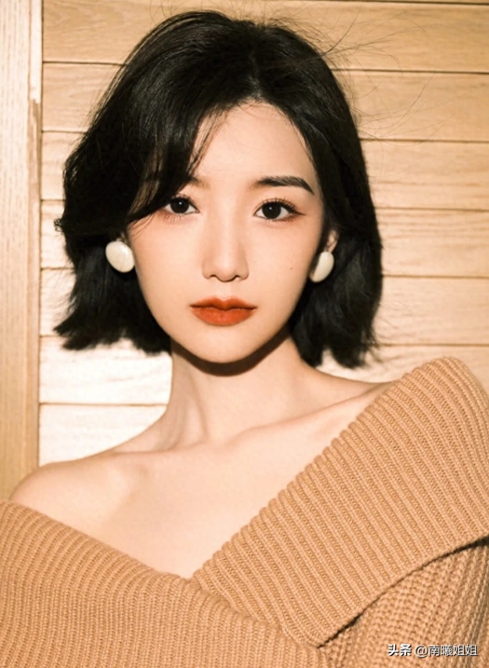 比较短款的刘海指的就是没有越过眉毛部位的长度,这一类的刘海的衬托气质真的是利落、简约和个性,相对比较于常规的刘海而言更减龄和凸显时髦,与一刀切的短发气质也更为符合,尤其是圆形脸、瓜子脸的女性,简单拿捏。