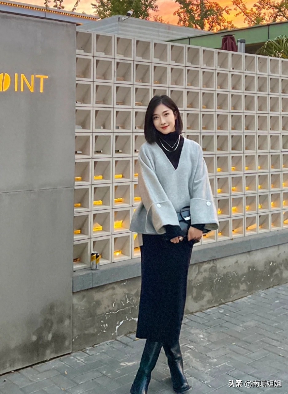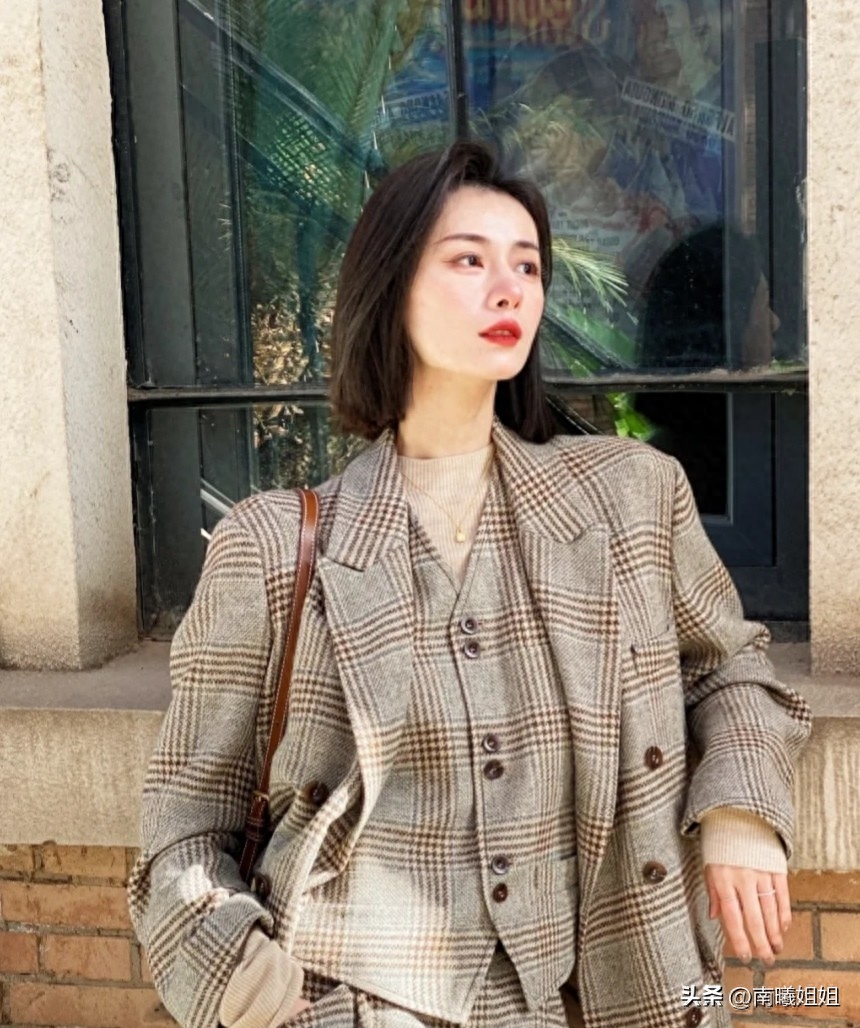 第二类推荐搭配则是“风格的混搭与碰撞”哦,利落酷酷的一刀切短发+温柔清新感的单品搭配,这样的组合绝对是展现新颖的美感状态,在秋冬季节赶快搭起来吧!