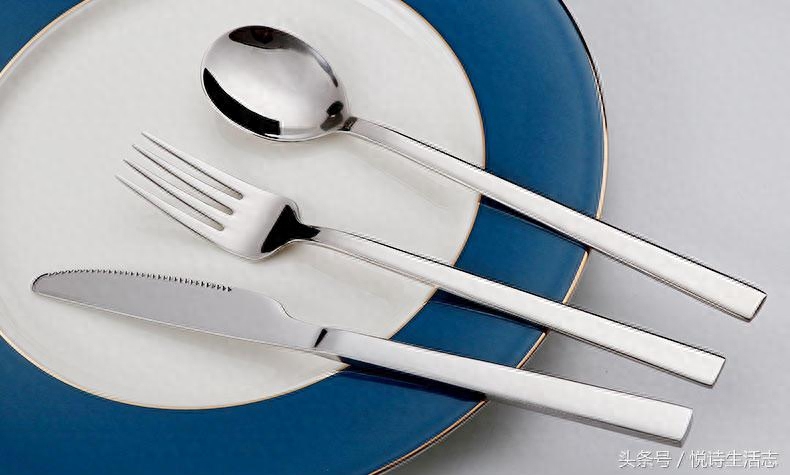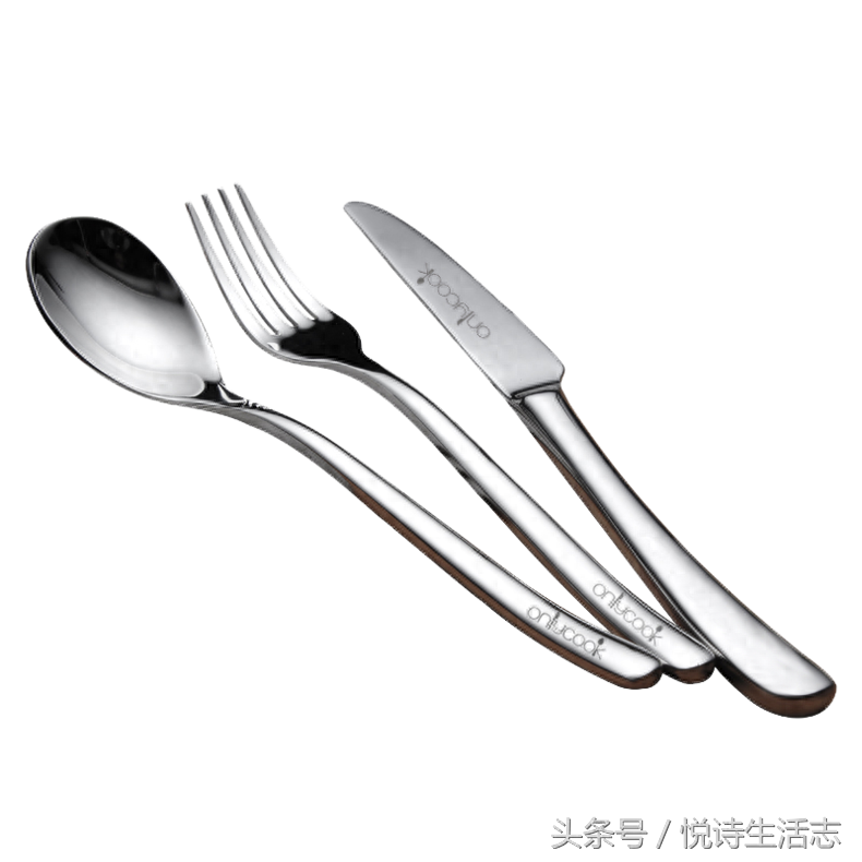 ▲刀叉勺四件配套的西餐餐具,防锈蚀不锈钢制作,镜面抛光岑亮照人,倒映着烛光晚餐的光亮和爱人晶亮的眼眸,绝对是一个精致的夜晚。