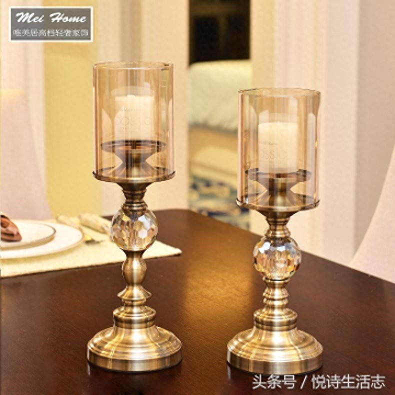 ▲想要体现乡村式的怀旧风格,可以使用中世纪风的防风玻璃盏,高档水晶金属烛台工艺品摆设,低调而奢华。
