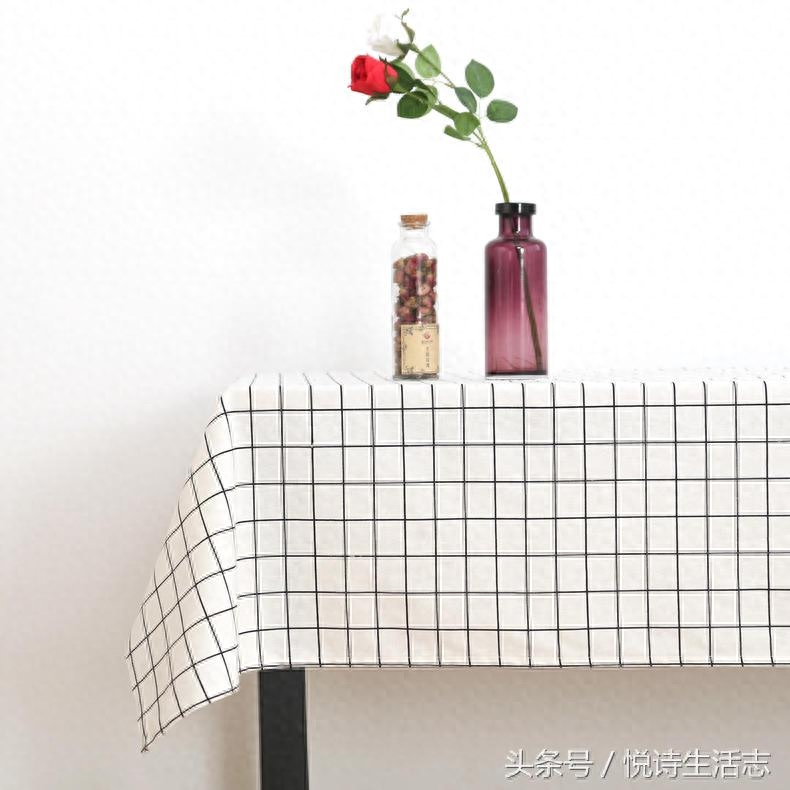 ▲如果你是个文艺小清新,喜欢更简素的风格,那么就用这样的方格餐桌布,棉麻布艺面料,触感温柔,烛光晚餐也显得清新素雅。