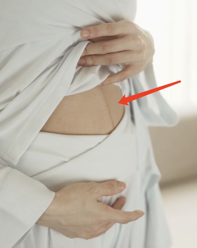 程晓玥的腹部留下了深深的妊娠线,腹部也依然高高隆起,仍像有四个月的身孕似的。一个女人在孕期肚子被撑得像篮球一样大,如今宝宝已经出生,腹部的肌肤自然变得松弛,一时半会儿很难变回之前的蚂蚁腰,不过好在程晓玥的腹部没有太多妊娠纹和褶皱。