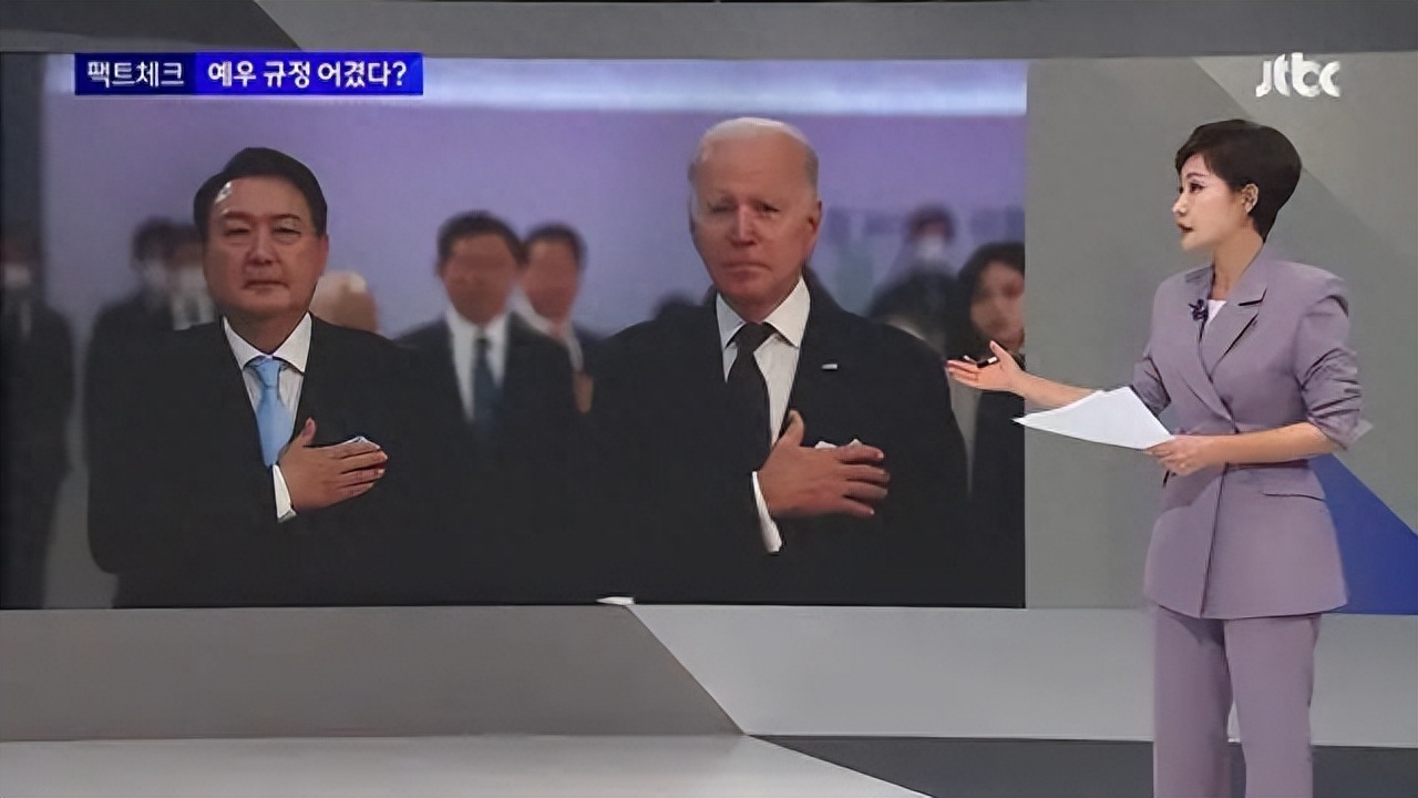 韩国电视台报道尹锡悦成为韩国历史上首位向美国国旗敬礼的总统