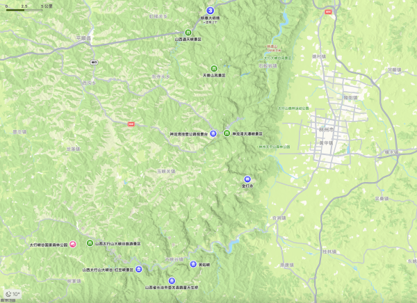 第二个区域以西边太岳山旅游为主,主要景点有太岳山国家森林公园、沁河源湿地公园、太岳军区司令部旧址等。
