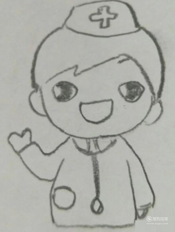 1先画出护士的头部,头顶戴着条纹的护士帽,头发和脸部都画出来2接着画出护士的脸部五官,圆圆的眼睛涂黑留出高光,还要画上睫毛会更漂亮哦3顺着画出护士的双手和身体,双手抱着一个大大的爱心,爱心的形状在画。