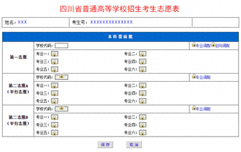 提前批常规类志愿设置一个第一志愿和两个平行第二志愿,每个志愿里可以填6个专业,设置了定向调配和专业调配。