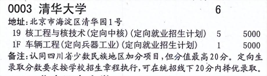 比如清华大学的定向就业计划,包含了定向中核以及定向兵器工业,报考这类定向就业的考生,当达到清华大学在当地的同科类本一批次分数线上报考该专业的考生人数不满招生计划数时,可在统招调档线下20分之内(且不低于当地同批次最低控制线)调阅有定向专业志愿的考生档案,择优录取。