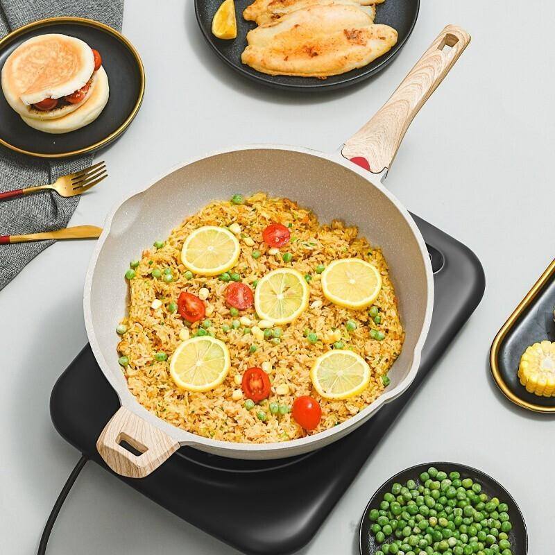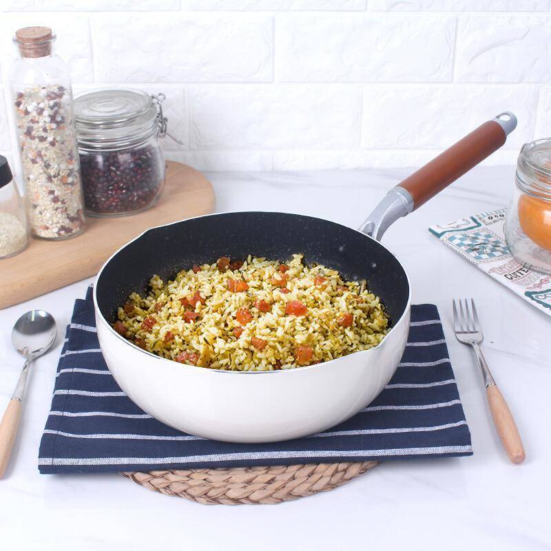 除了我们比较熟悉的不粘锅和铁锅以外,还有铝制和麦饭石等材料制作而成的炒锅
