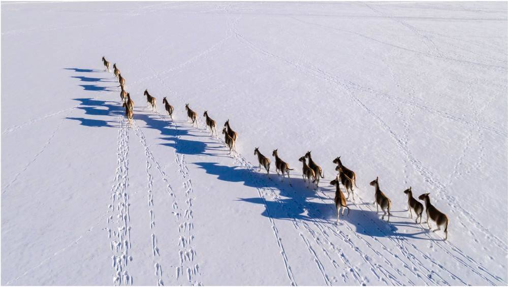 海拔4600米的可可西里,冰天雪地,寒风凛冽。在索南达杰保护站,工作人员邓海平蹲在寒风中,双手握着热好的奶瓶,给一群小藏羚羊喂食,这是严寒中的可可西里最温情的画面。