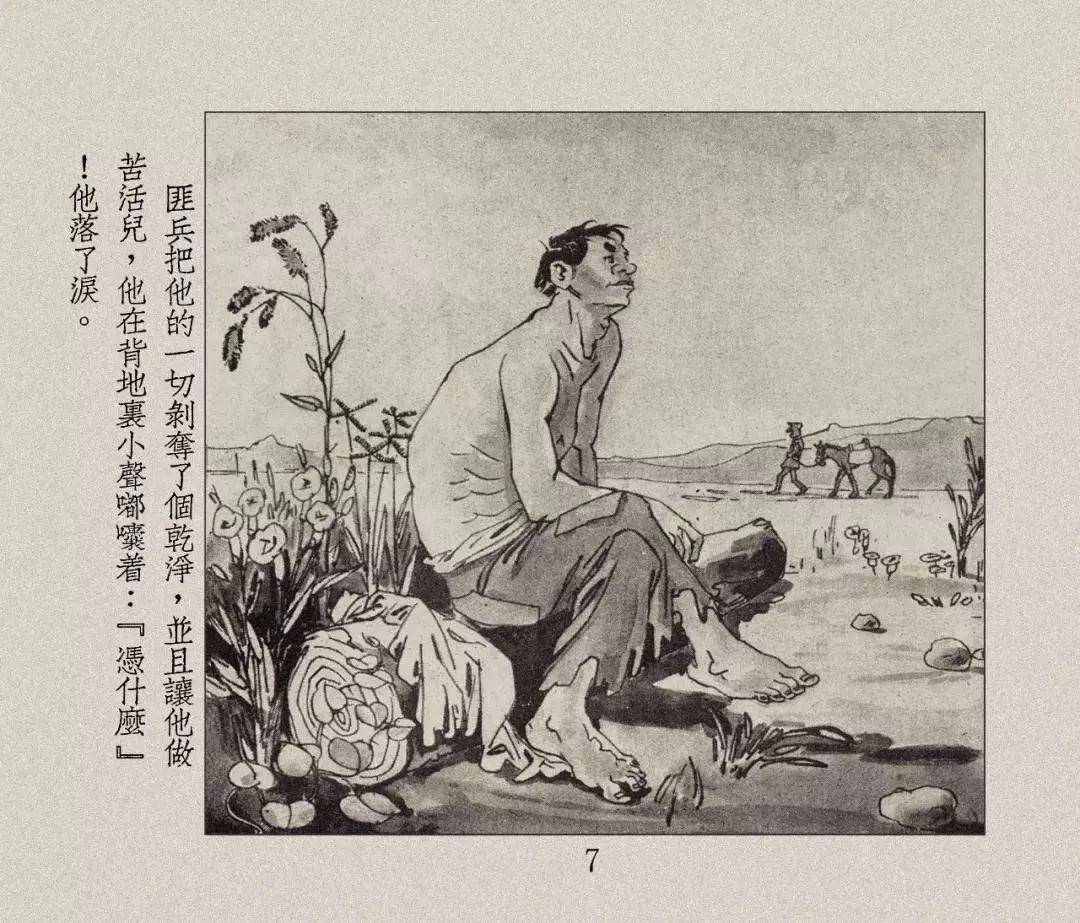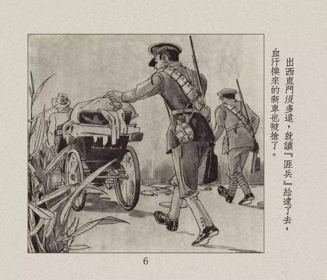 解析:连续的情节,在画面的处理上注意读者的心里。因为后面的情节始终围绕着西山,模式口等地发生,所以仍与前幅人物前行的方向一致,使人觉得离北京城越来越远了。