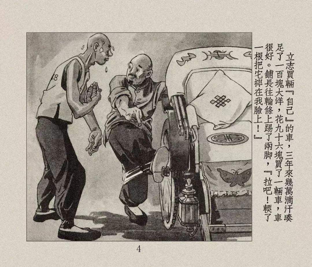 解析:《骆驼祥子画传》中共有18幅中出现洋车,完整地整出洋车的共有6幅,局部地出现洋车的也有6幅。祥子买车属于局部类,但是却是最干净、漂亮,质量上乘的,这是祥子用自己的血汗钱买来的呀!