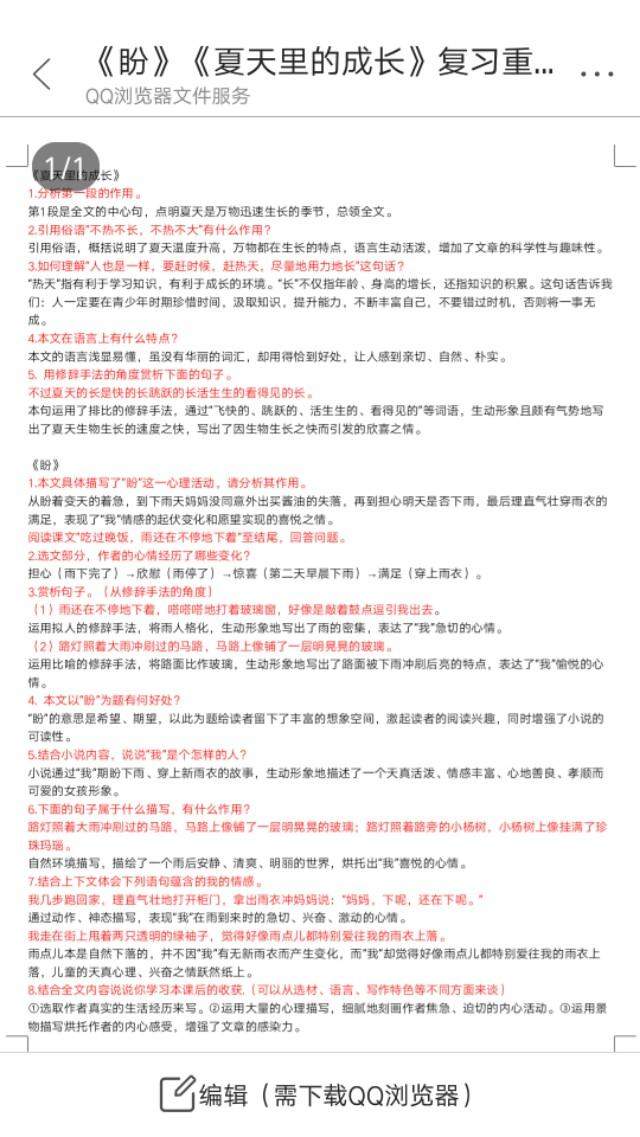 5. 用修辞手法的角度赏析下面的句子。不过夏天的长是快的长跳跃的长活生生的看得见的长。本句运用了排比的修辞手法,通过“飞快的、跳跃的、活生生的、看得见的”等词语,生动形象且颇有气势地写出了夏天生物生长的速度之快,写出了因生物生长之快而引发的欣喜之情。